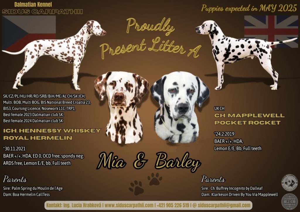 Dňa 25. 5. 2025 sa v chovateľskej stanici Sidus Carpathii narodili šteniatka. Narodilo sa spolu 9 šteniatok.